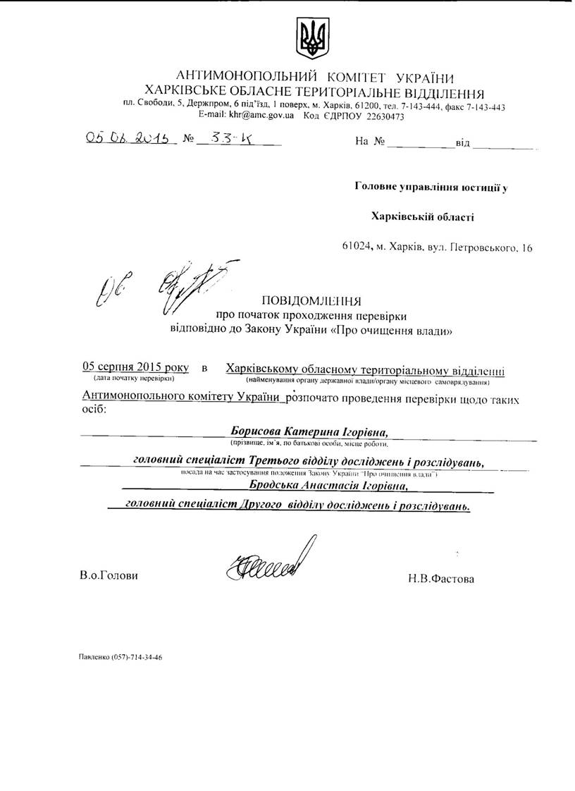 Повідомлення про перевірку відповідно до Закону України "Про очищення влади"