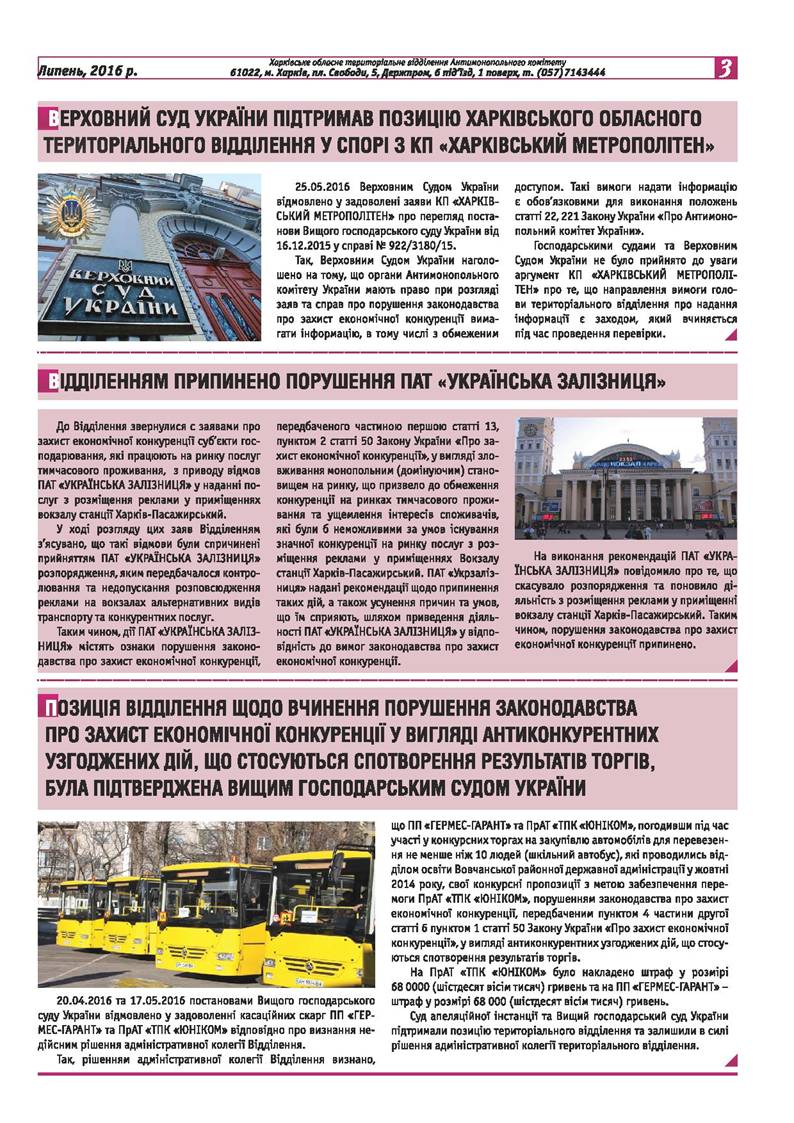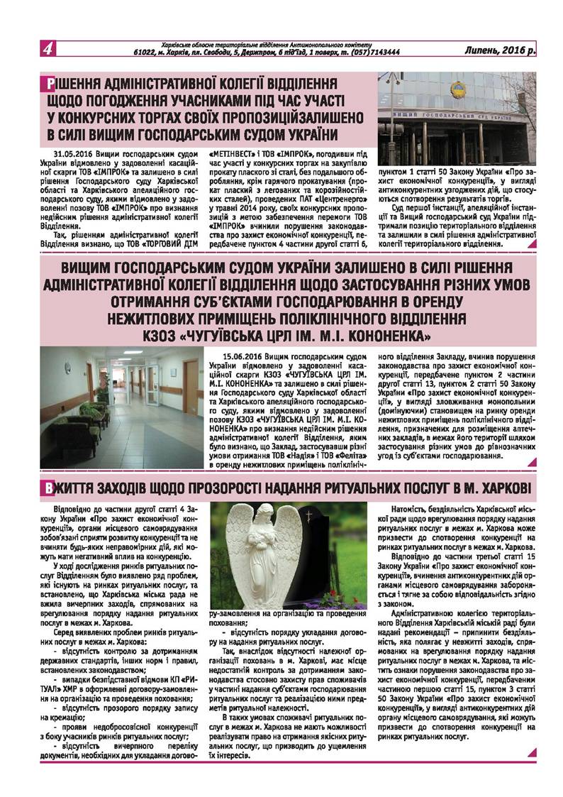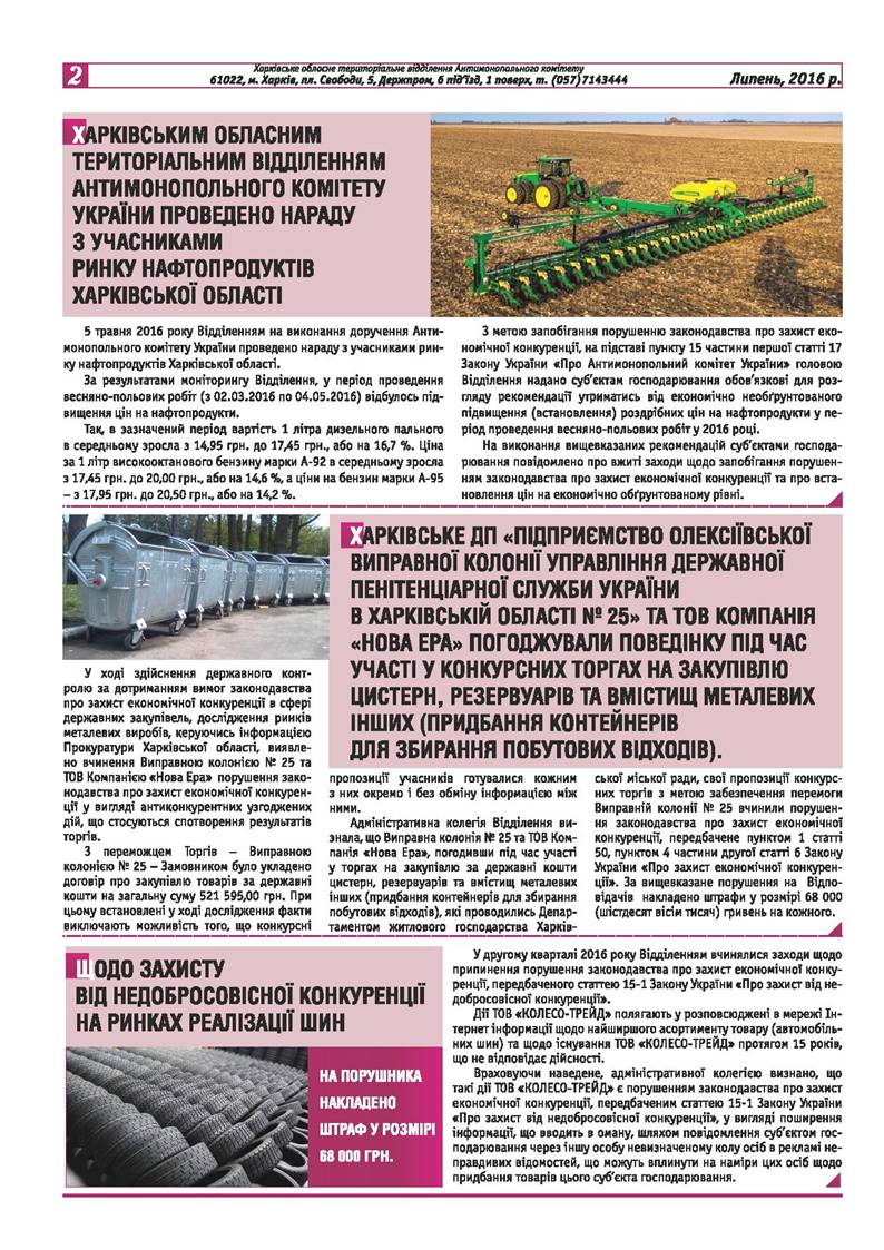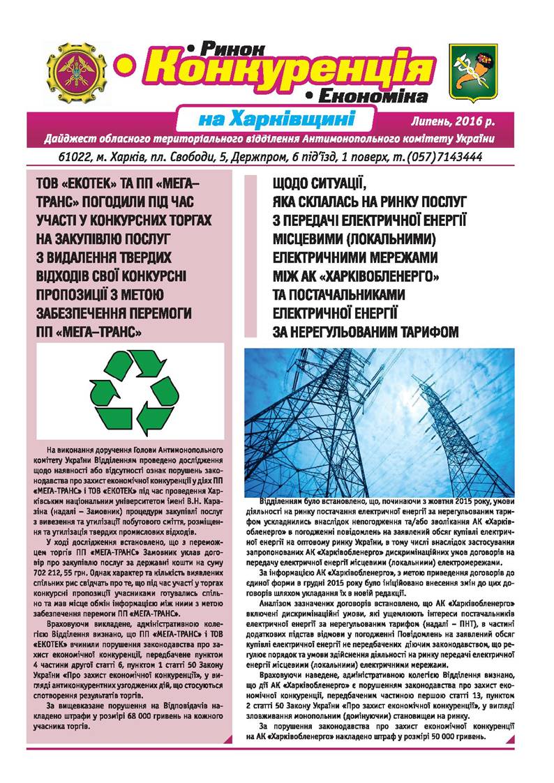 Дайджест Харківського обласного теріторіального відділення Антимонопольного комітету України за 2 квартал 2016 року