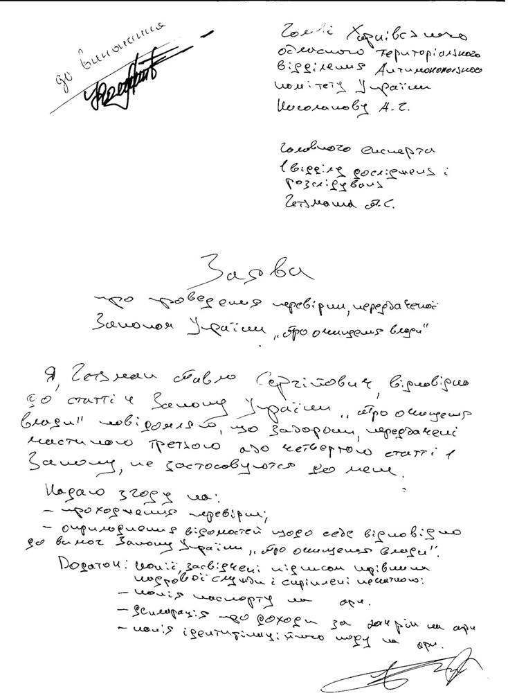 Повідомлення про перевірку відповідно до Закону України "Про очищення влади"