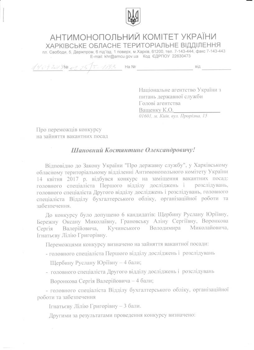 Рекомендації адміністративної колегії відділення від 13.04.17 №02-08/720 "Про припинення дій, які містять ознаки порушення законодавства про захист економічної конкуренції"