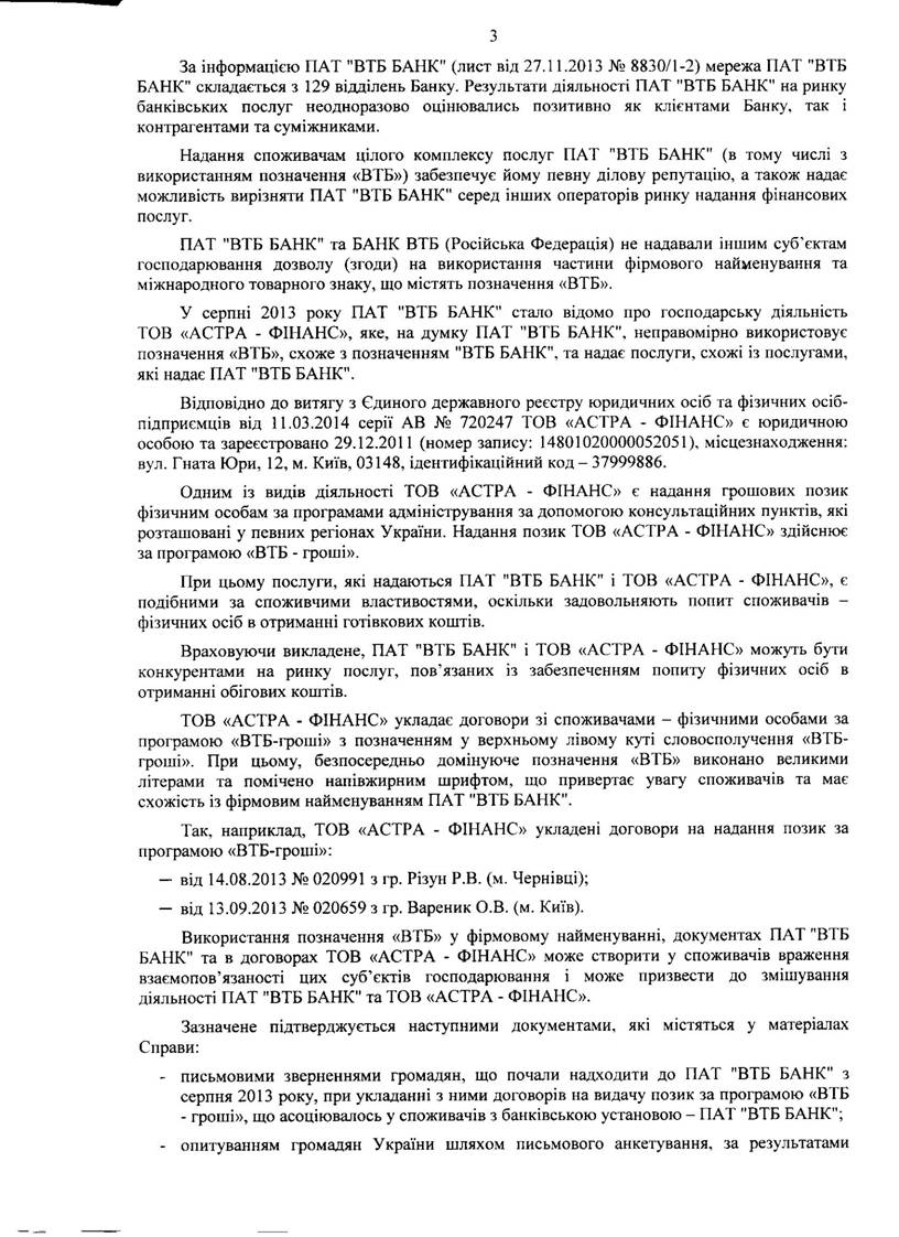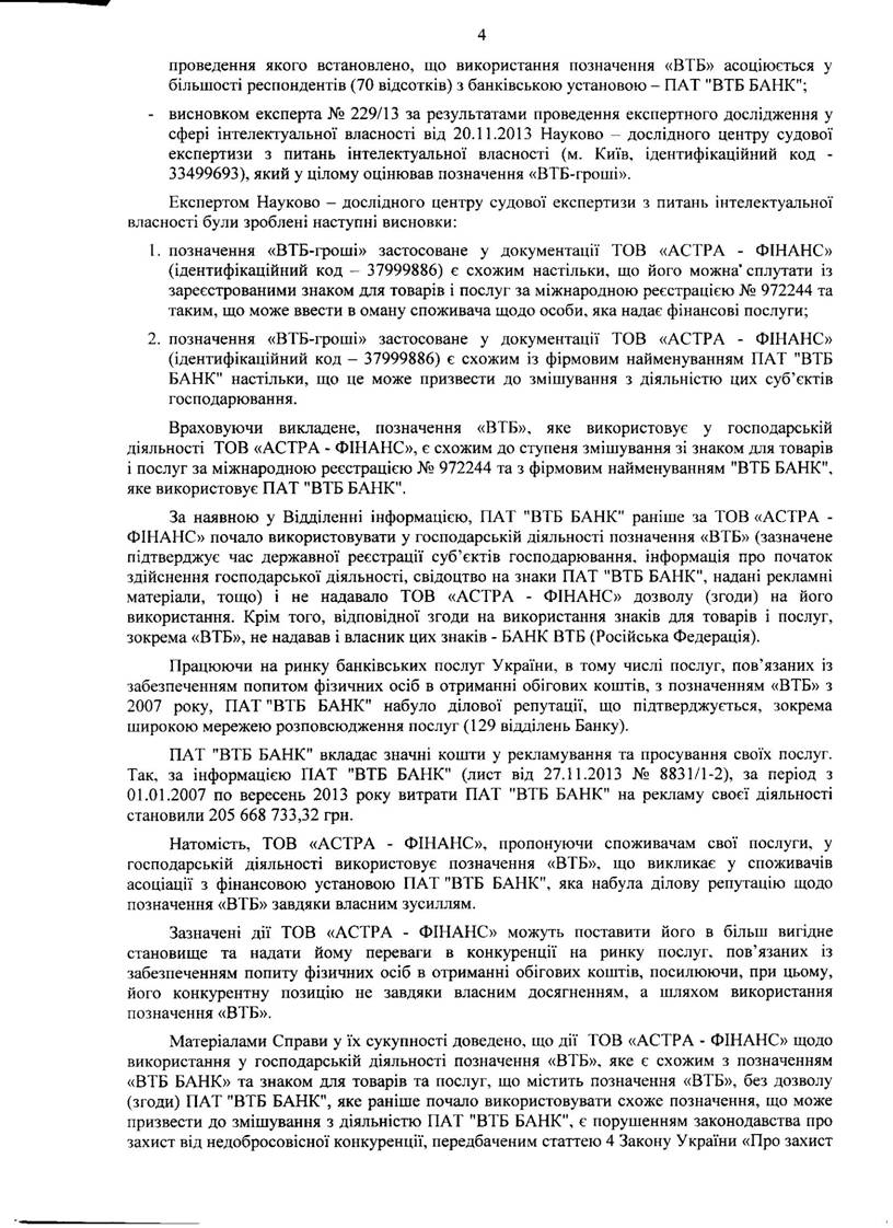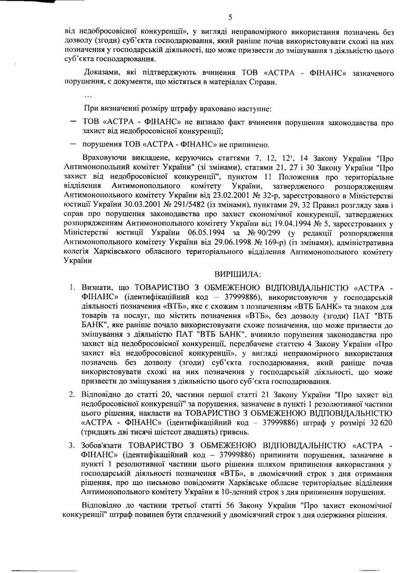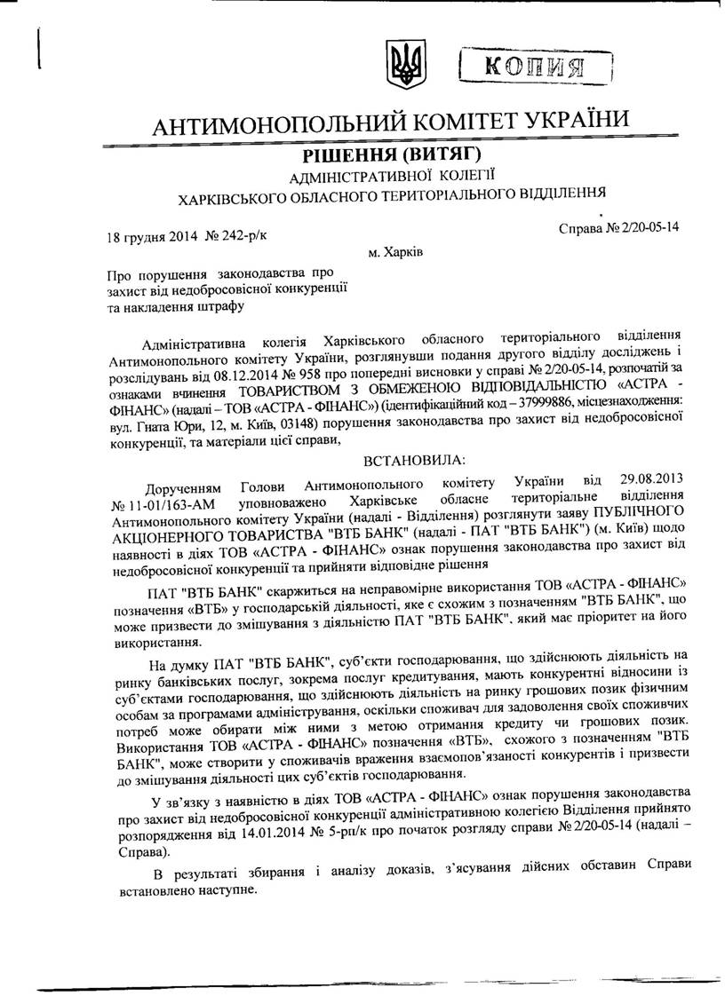 ІНФОРМАЦІЯ ЩОДО РІШЕННЯ ВІД 18.12.2014 У СПРАВІ № 2/20-05-14 ПРО ПОРУШЕННЯ ЗАКОНОДАВСТВА ПРО ЗАХИСТ ЕКОНОМІЧНОЇ КОНКУРЕНЦІЇ ТОВАРИСТВОМ З ОБМЕЖЕНОЮ ВІДПОВІДАЛЬНІСТЮ "АСТРА-ФІНАНС"