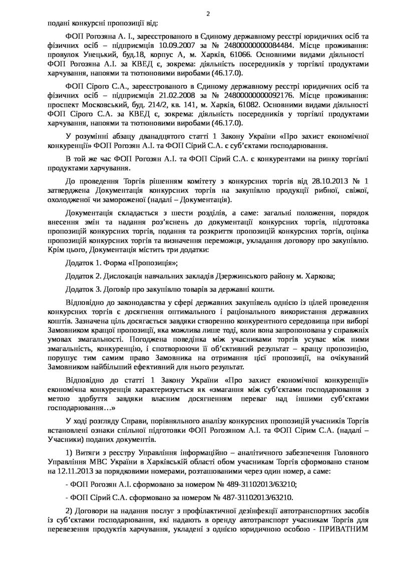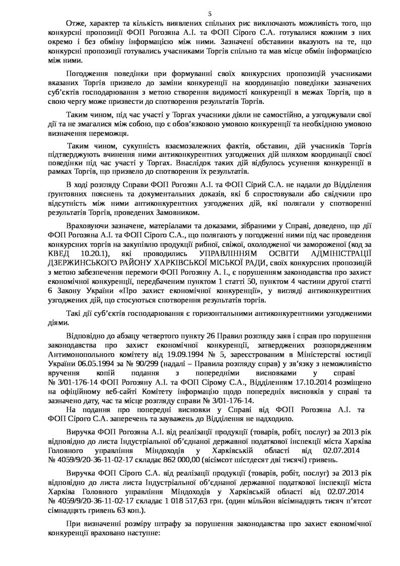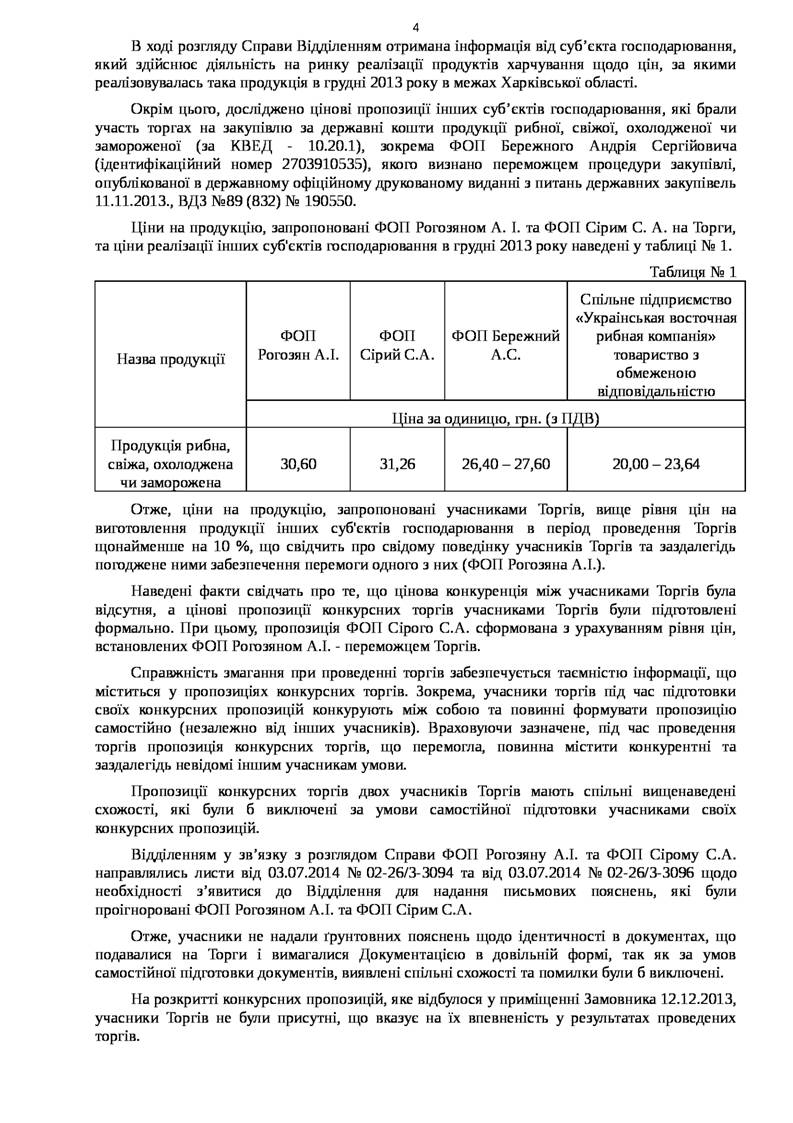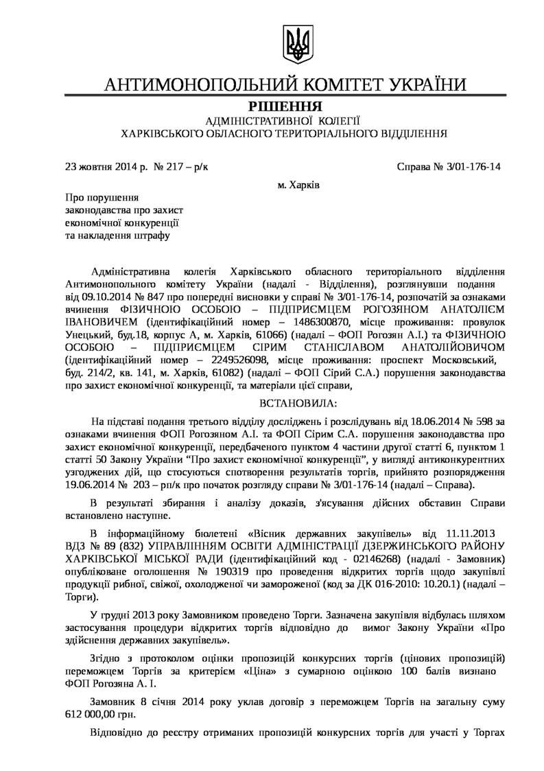 ІНФОРМАЦІЯ ЩОДО РІШЕННЯ ВІД 23.10.2014 № 217-Р/К У СПРАВІ № 3/01-176-14ПРО ПОРУШЕННЯ ЗАКОНОДАВСТВА ПРО ЗАХИСТ ЕКОНОМІЧНОЇ КОНКУРЕНЦІЇ З БОКУ ФОП РОГОЗЯНА А.І.