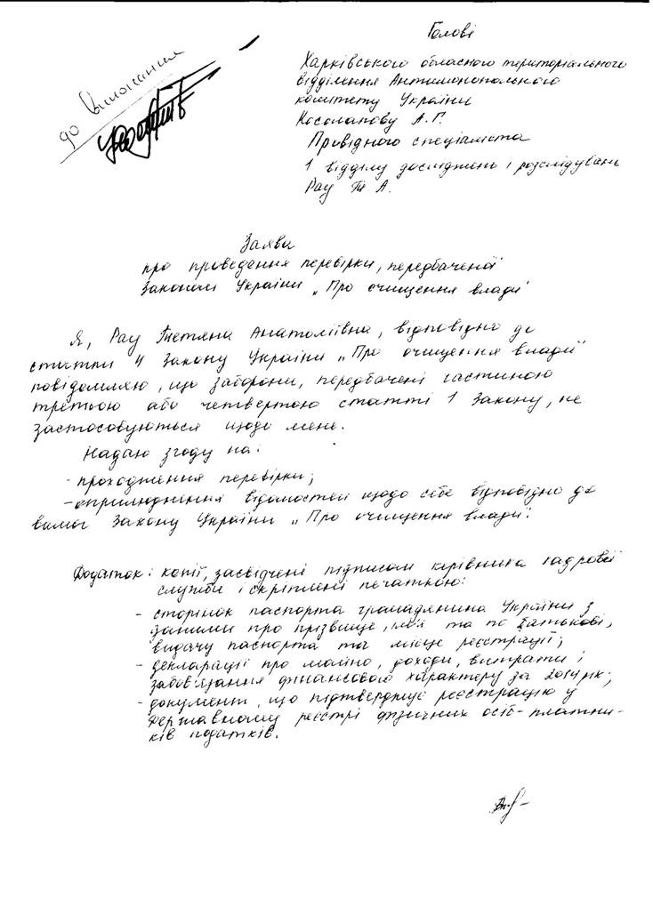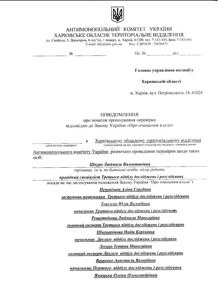 Повідомлення про перевірку відповідно до Закону України "Про очищення влади"
