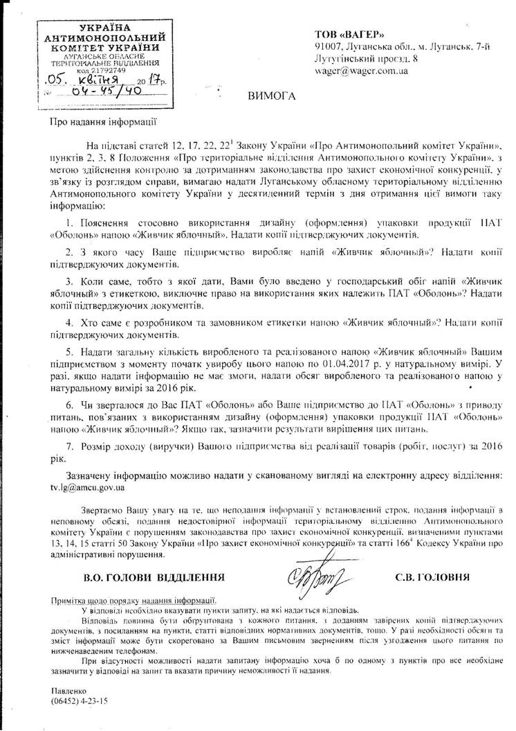 Витяг з рекомендацій адміністративної колегії відділення від 05.04.17 №02-08/662 "Про припинення дій, які містять ознаки порушення законодавства про захист економічної конкуренції"