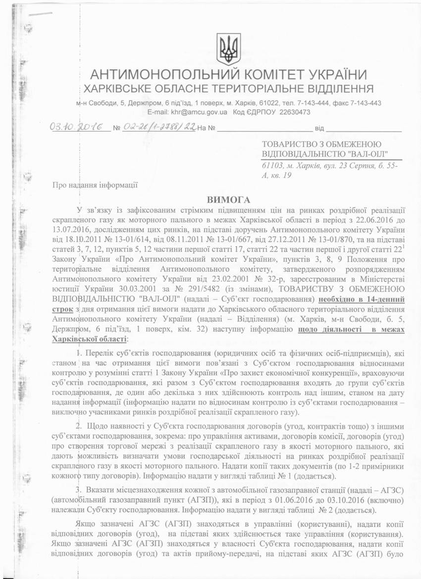 ВИМОГА ВІД 03.10.2016 № 02-26/1-2788/13 ДО ФОП ВАРИПАЄВА О.В.