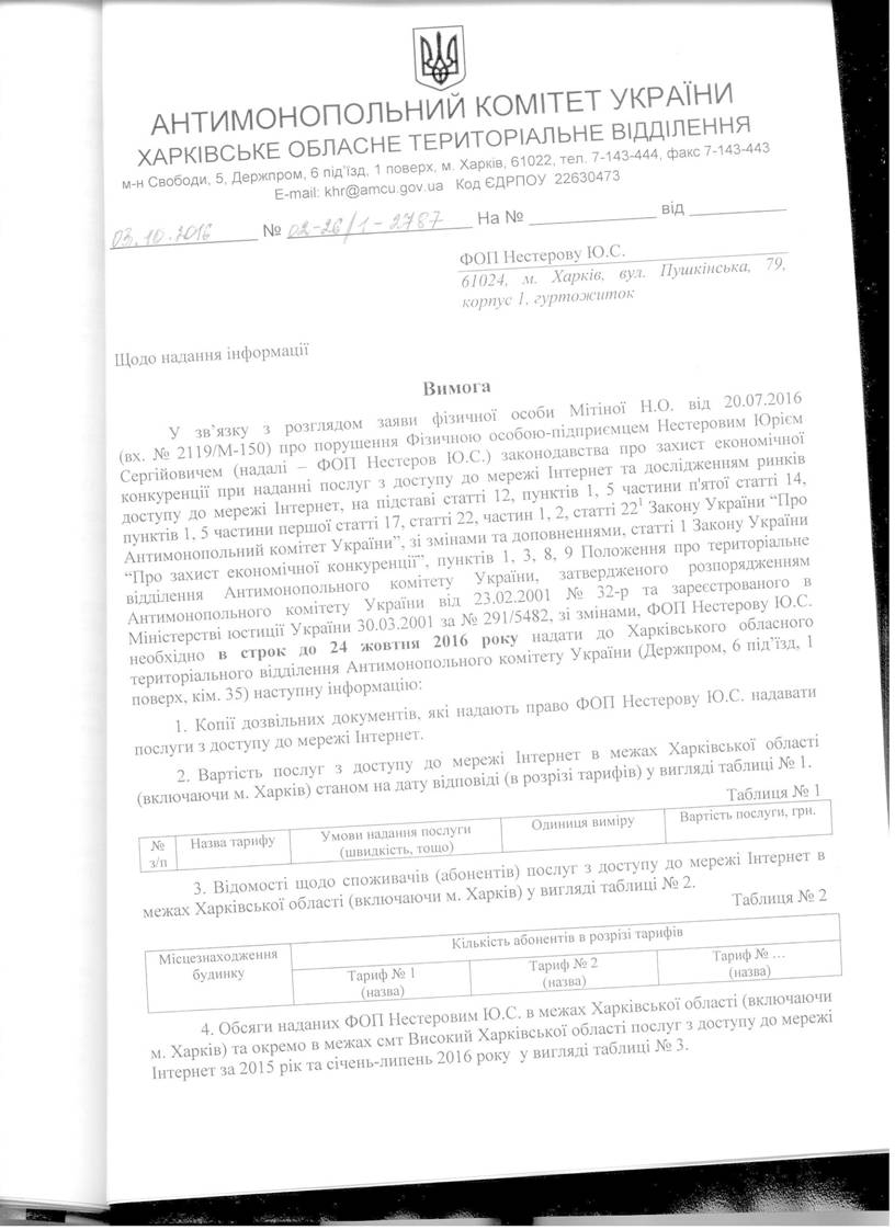 ВИМОГА від 03.10.2016 № 02-26/1-2788/16 до ПІДПРИЄМСТВА "АФГАН" ХМГО "АСОЦІАЦІЯ ПРАВОГО ТА СОЦІАЛЬНОГО ЗАХИСТУ ІНВАЛІДІВ АФГАНІСТАНУ"