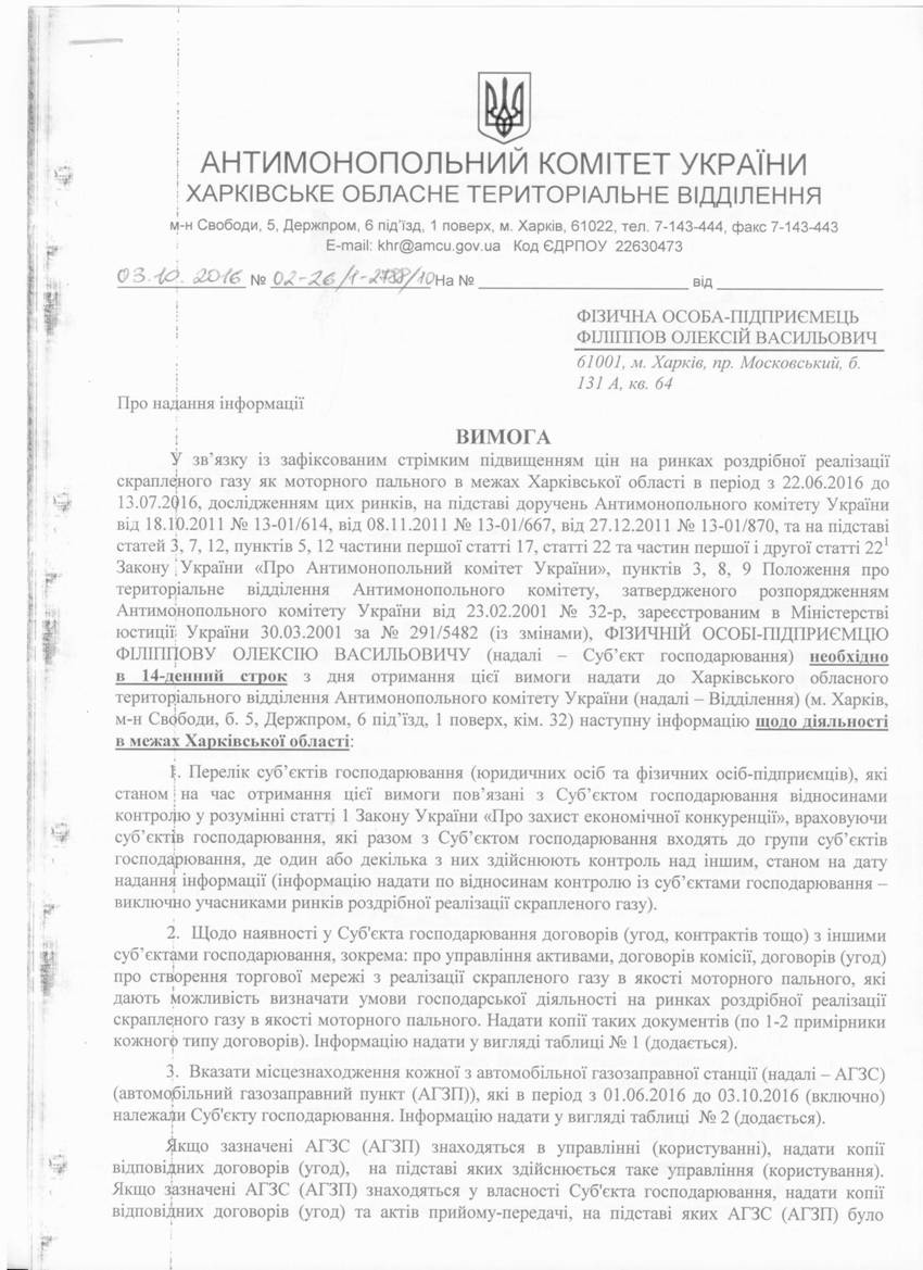 ВИМОГА ВІД 03.10.2016 № 02-26/1-2788/7 ТОВ "УКРНАФТОПРОДУКТ-КРИМ"