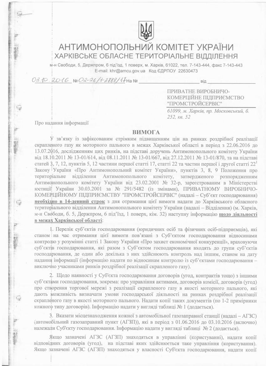 ВИМОГА ВІД 03.10.2016 № 02-26/1-2788/12 ДО ПП "РЕАЛ-НАФТОСЕРВІС"