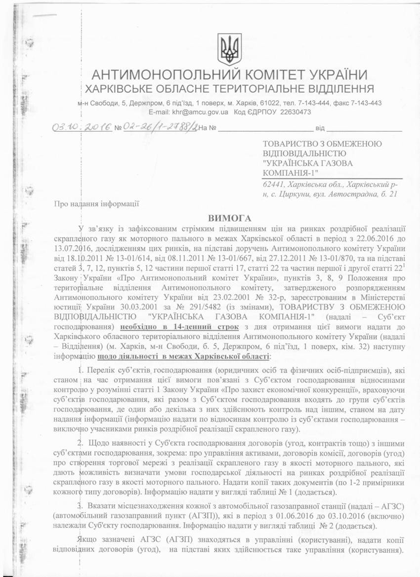 ВИМОГА ВІД 03.10.2016 № 02-26/1-2788/7 ТОВ "УКРНАФТОПРОДУКТ-КРИМ"