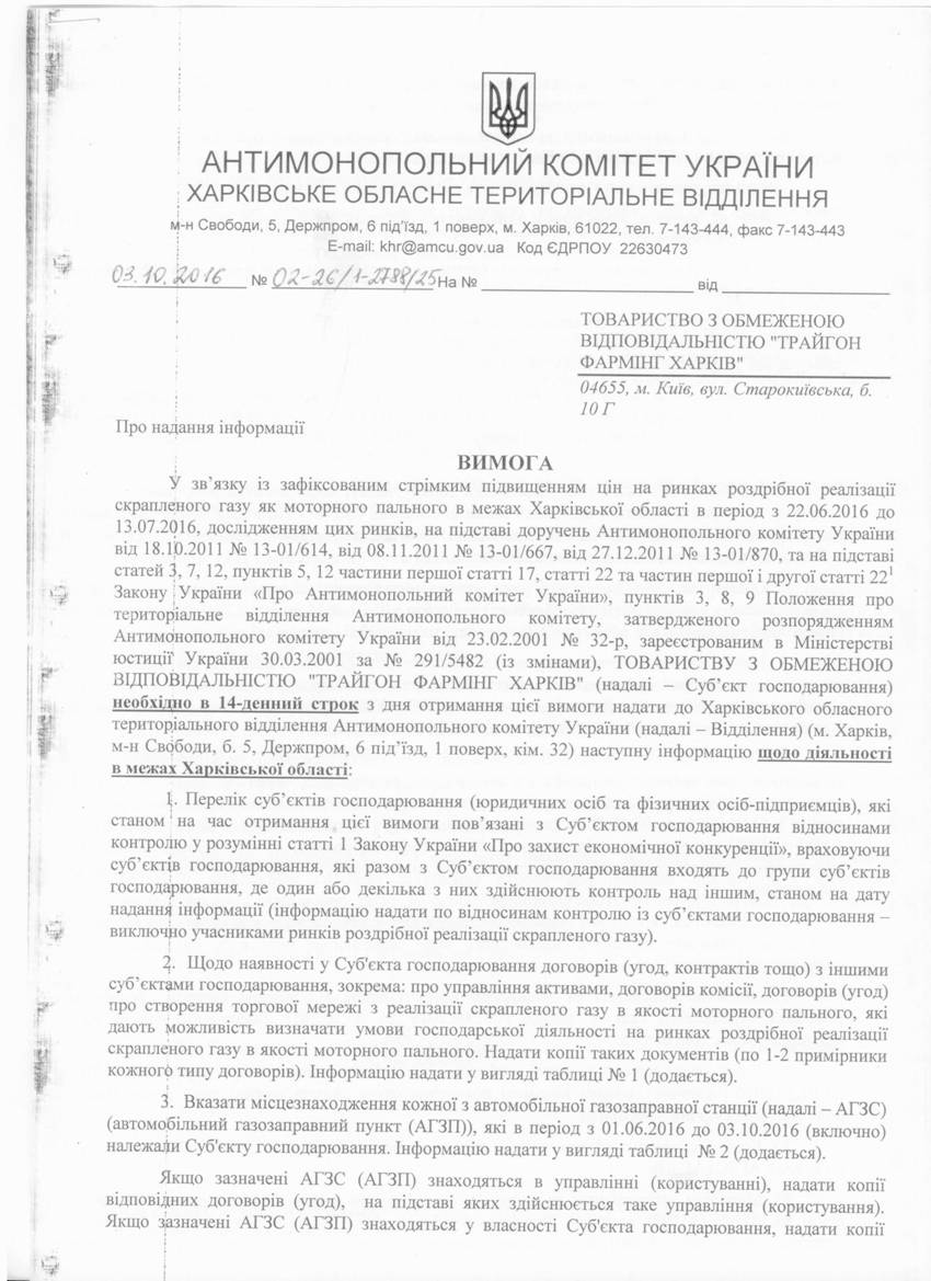 ВИМОГА ВІД 03.10.2016 № 02-26/1-2788/21 ПП " ТРАНСОЙЛ"