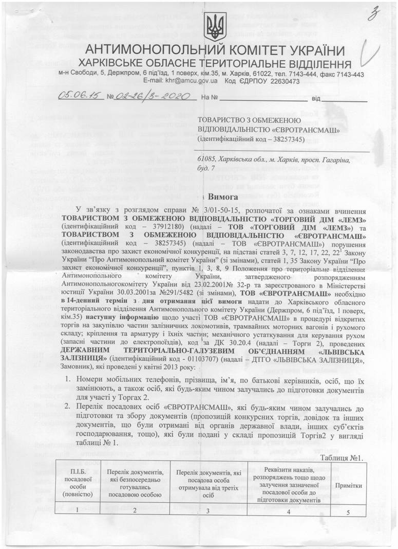 Вимога від 05.06.2015 № 02-26/3-2021 до ТОВАРИСТВА З ОБМЕЖЕНОЮ ВІДПОВІДАЛЬНІСТЮ "ЄВРОТРАНСМАШ"