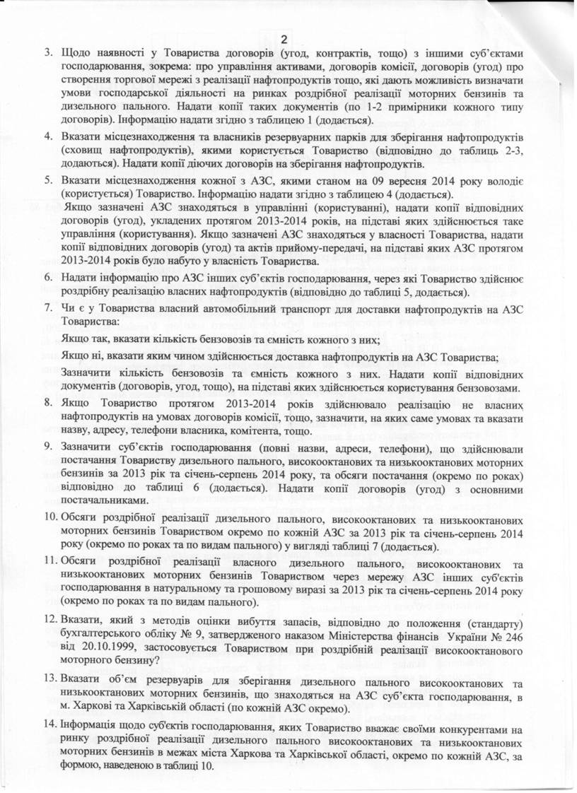 ВИМОГА ВІД 11.09.2014 № 02-26/2-4063 ПРО НАДАННЯ ІНФОРМАЦІЇ ТОВАРИСТВОМ З ОБМЕЖЕНОЮ ВІДПОВІДАЛЬНІСТЮ "СПЕЦІАЛІЗОВАНА ГРУПА ОХОРОНИ "БАРС"