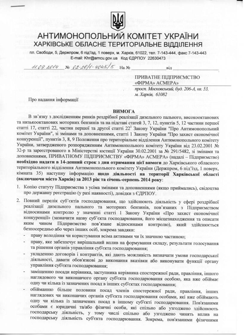 ВИМОГА ВІД 11.09.2014 № 02-26/1-4045/6 ПРО НАДАННЯ ІНФОРМАЦІЇ ПП "СПІКА"