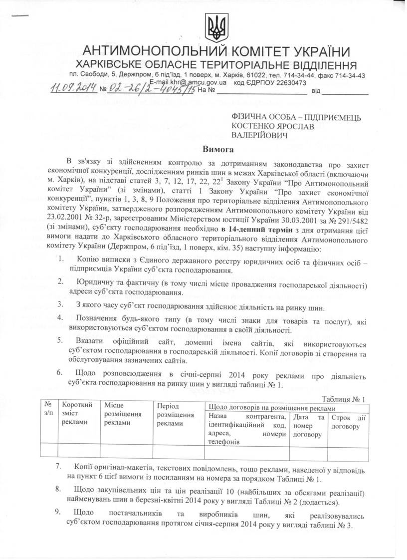 ВИМОГА ВІД 11.09.2014 № 02-26/2-4045/14 ПРО НАДАННЯ ІНФОРМАЦІЇ ТОВАРИСТВОМ З ОБМЕЖЕНОЮ ВІДПОВІДАЛЬНІСТЮ "ТОРГОВИЙ ДІМ "ТОП-СЕРВІС"
