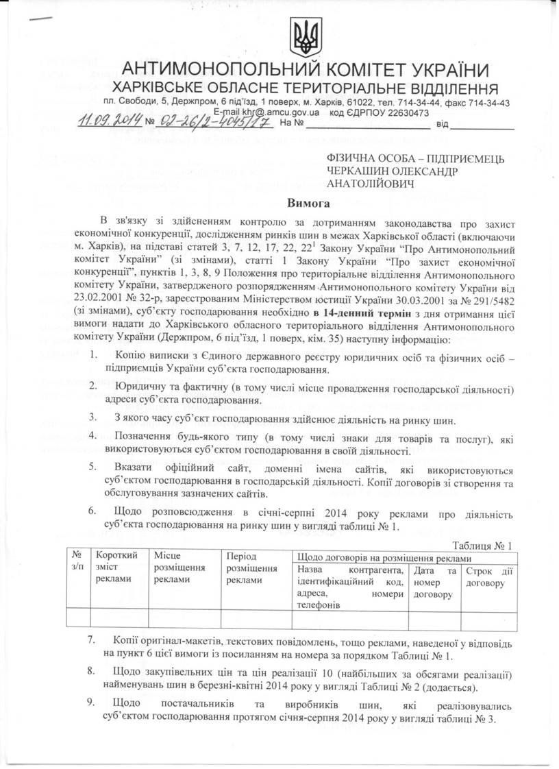 ВИМОГА ВІД 11.09.2014 № 02-26/2-4045/16 ПРО НАДАННЯ ІНФОРМАЦІЇ ФІЗИЧНОЮ ОСОБОЮ-ПІДПРИЄМЦЕМ КУТЕРГІН РОМАНОМ МИКОЛАЙОВИЧЕМ