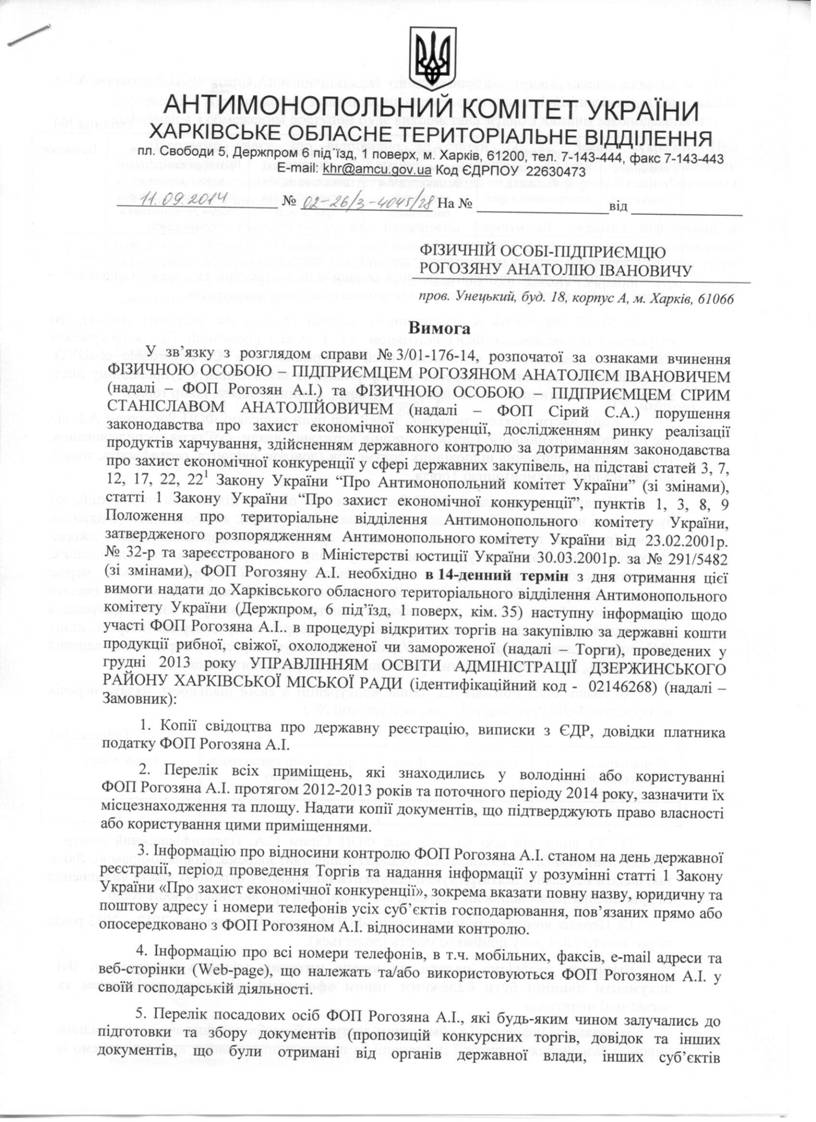 ВИМОГА ВІД 11.09.2014 № 02-26/3-4045/27 ПРО НАДАННЯ ІНФОРМАЦІЇ ФІЗИЧНОЮ ОСОБОЮ-ПІДПРИЄМЦЕМ СІРИМ СТАНІСЛАВОМ АНАТОЛІЙОВИЧЕМ