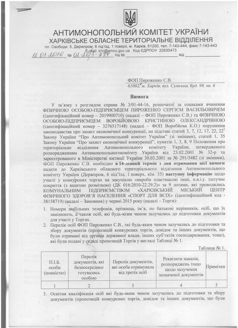 ВИМОГА ВІД 12.03.2016 № 02-26/3-772 до ФОП Воробйової К.О.