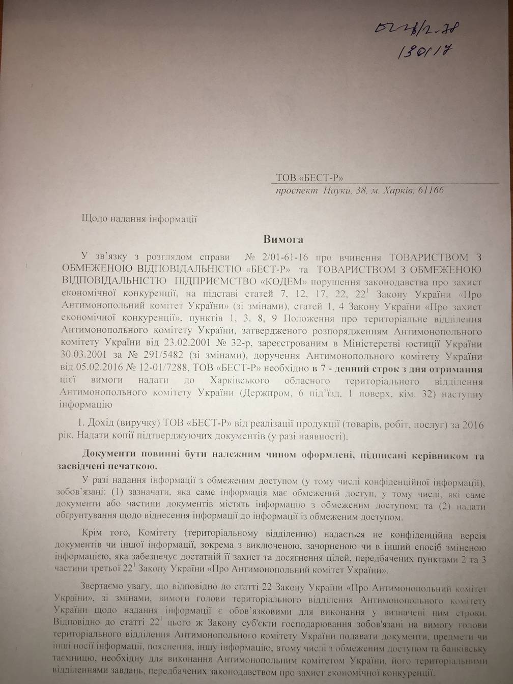 ВИМОГА ВІД 09.12.2016 № 02-26/3-3456 до ФОП АРУТЮНЯН А.О.