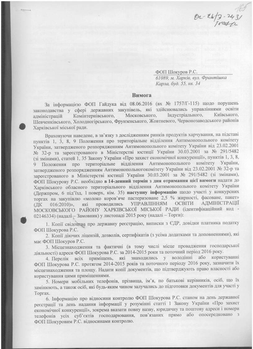 ВИМОГА ВІД 15.08.2016 № 02-26/3-2423 ФОП МАЛЯР В.В.