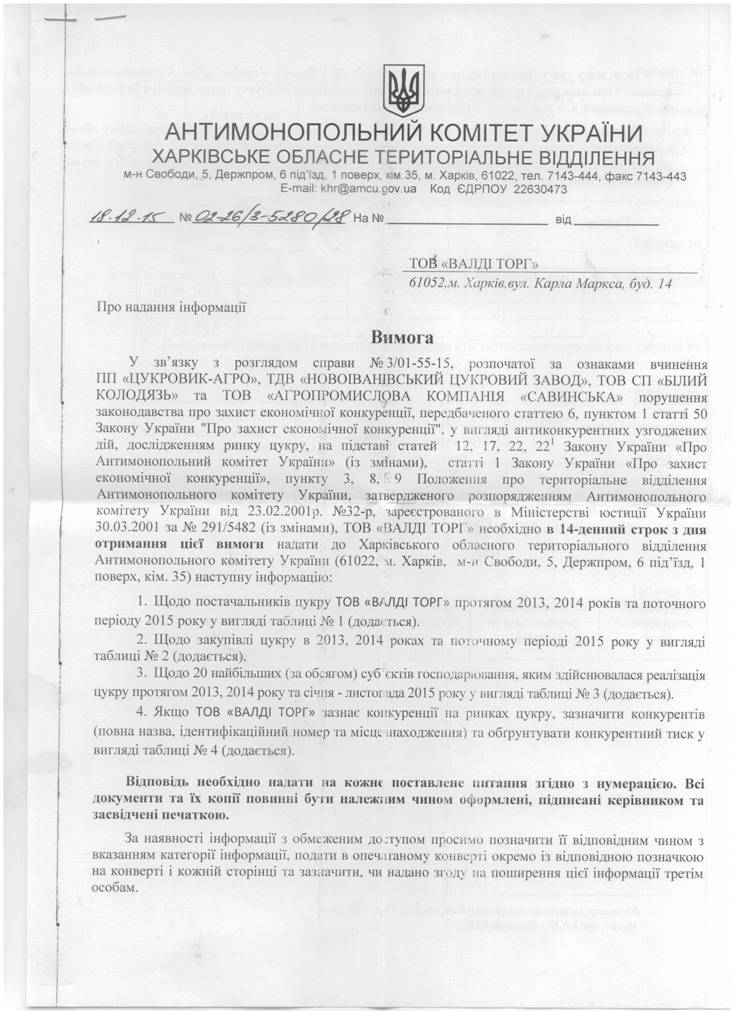 ВИМОГА ВІД 18.12.2015 № 02-26/3-5280/62 ДО ТОВ "КОМПАНІЯ "ІНТЕР-ОПТ"