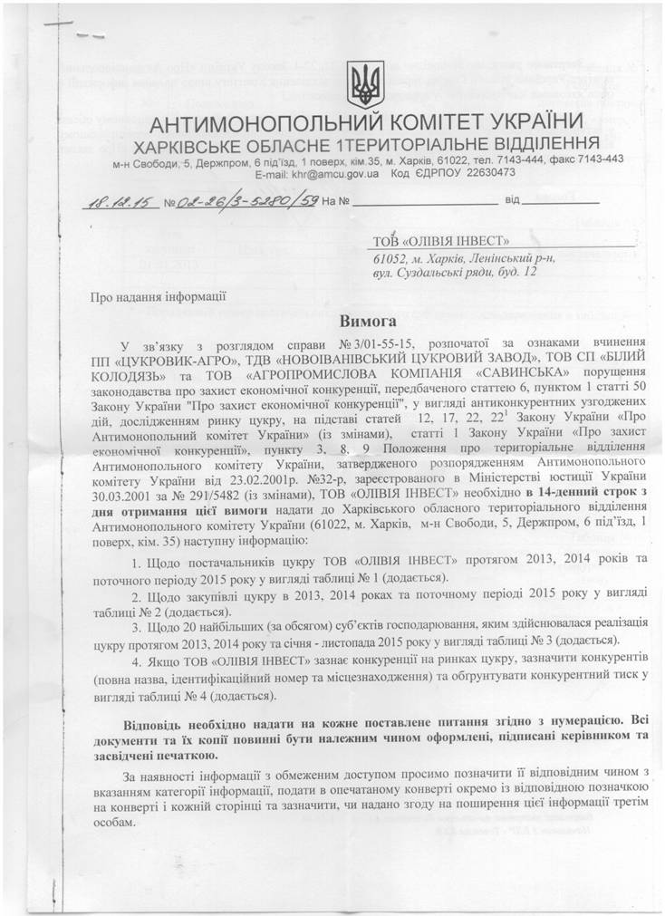 ВИМОГА ВІД 18.12.2015 № 02-26/3-5280/62 ДО ТОВ "КОМПАНІЯ "ІНТЕР-ОПТ"