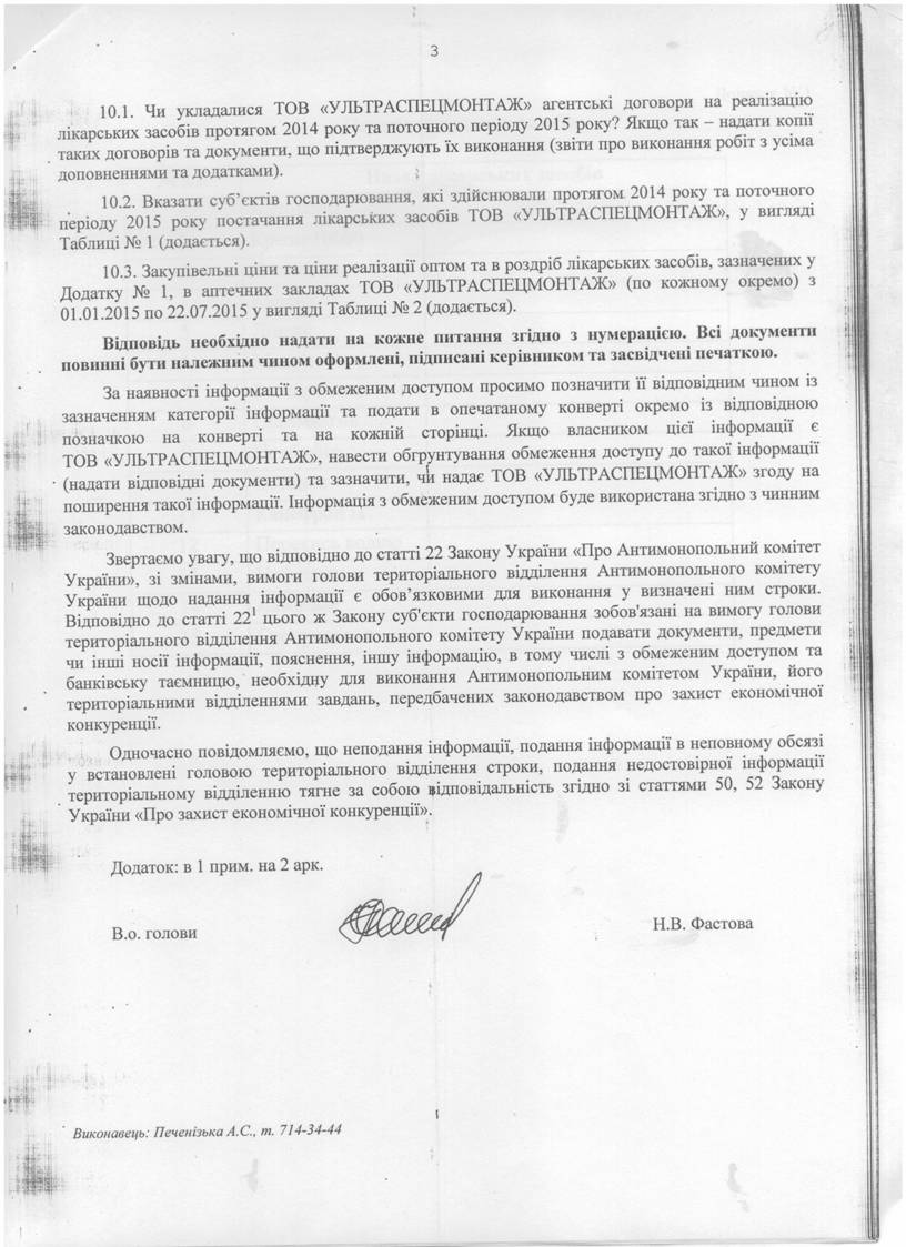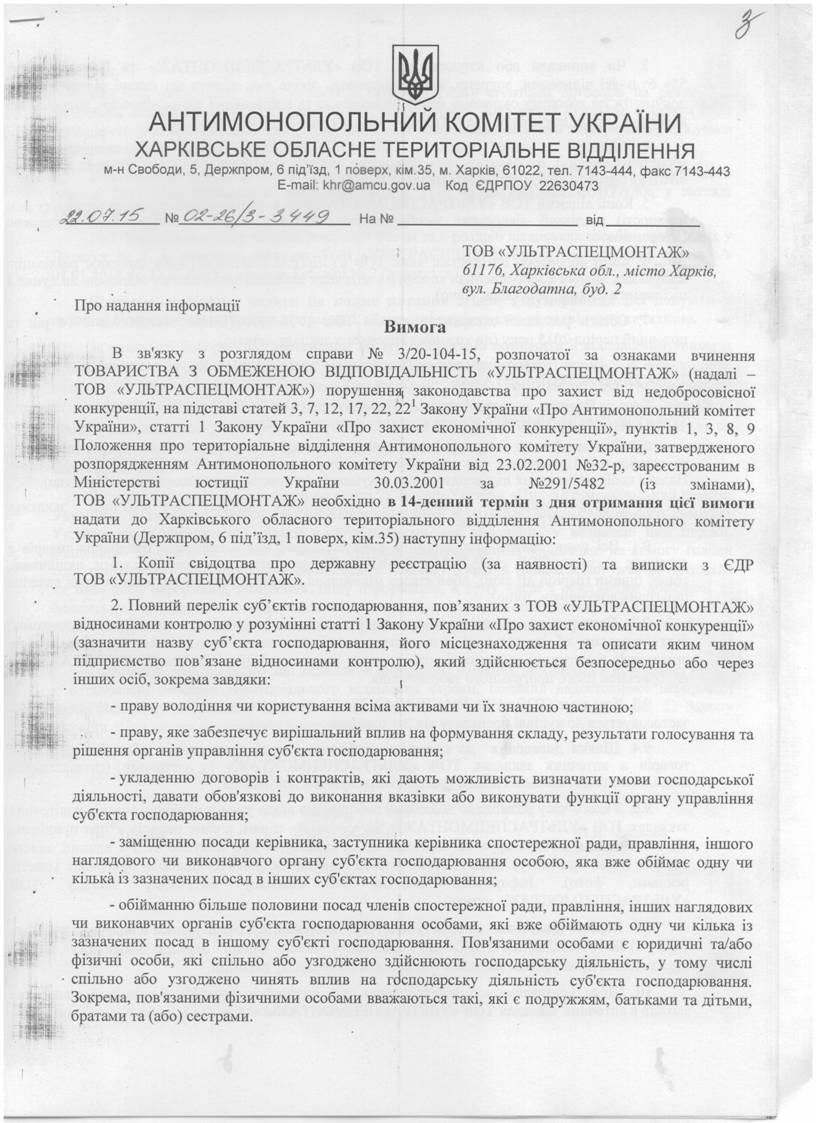 Вимога від 08/06/2015 № 02-26/3-2025/1 до ТОВАРИСТВА З ОБМЕЖЕНОЮ ВІДПОВІДАЛЬНІСТЮ "УЛЬТРАСПЕЦМОНТАЖ"