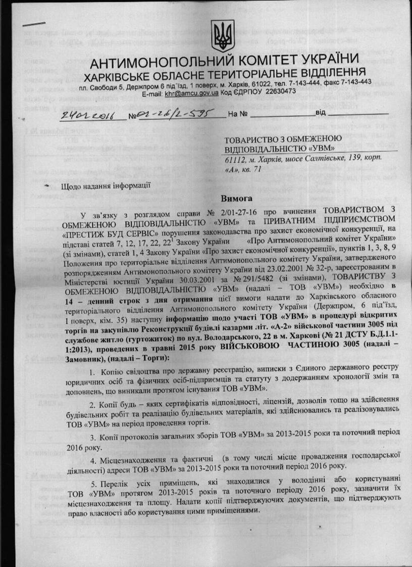 ВИМОГА ВІД 02.03.2016 № 02-26/2-665 ДО ТОВ" БК "ХАРКІВБУДМОНТАЖ"