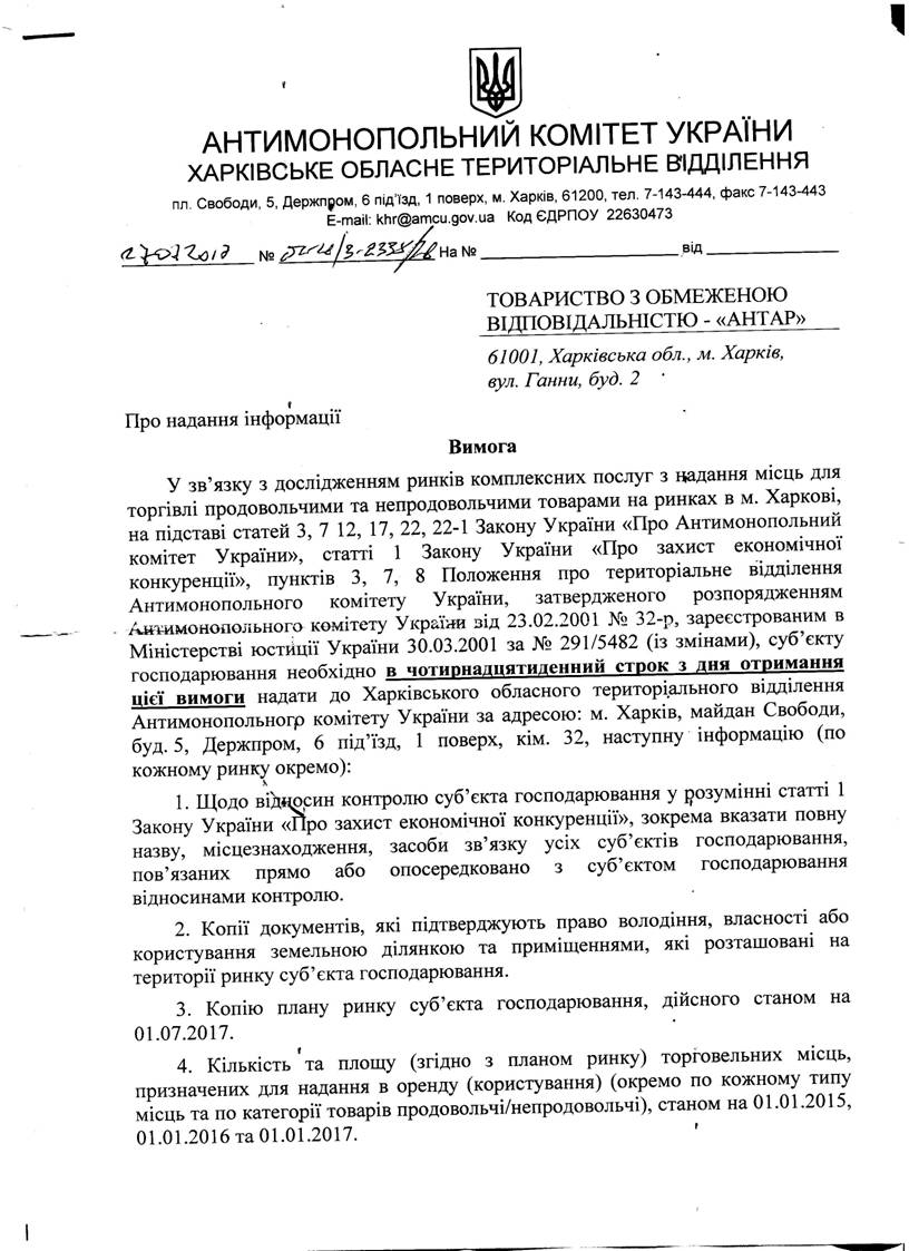 ВИМОГА ВІД 27.07.2017 № 02-26/3-2335/31 ДО ТОВ "АЛАРИС"