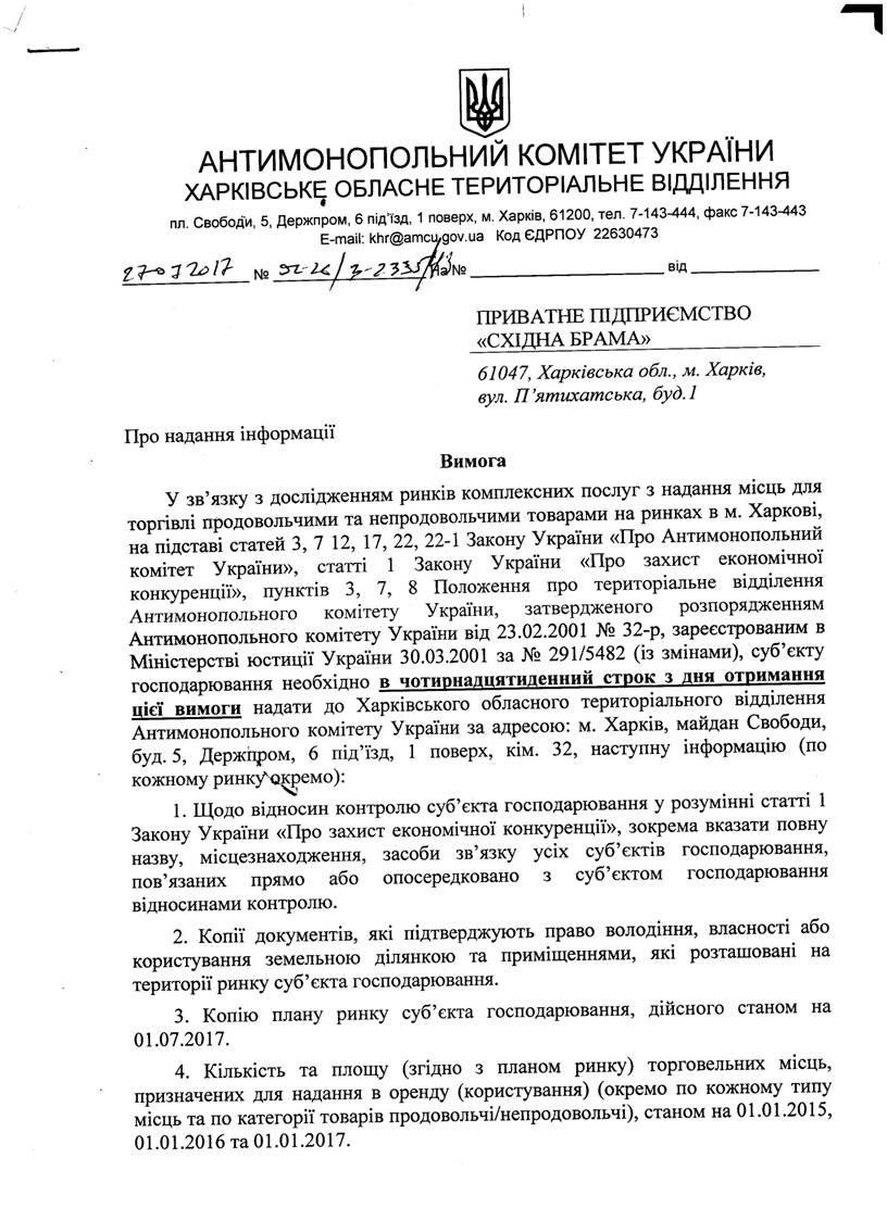 ВИМОГА ВІД 27.07.2017 № 02-26/3-2335/36 ДО ФОП ГРЕЧАНОВСЬКОЇ З.В.