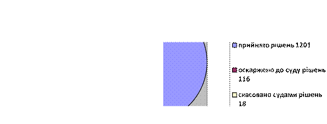 Протягом 10 років Полтавським ОТВ АМКУ прийнято 1201 рішення про порушення конкурентного законодавства та про закриття провадження по справах, з яких протягом вказаного періоду було оскаржено до суду 116 рішень, з яких лише 15 рішень територіального відділення визнано судами остаточно недійсними та 3 визнано недійсними частково, що становить 1,5 % від загальної кількості прийнятих рішень (рис. 14).